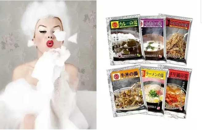 一些商家推出了一系列以日本料理為味道的浴鹽,其中包括你們最愛吃的味增湯、豬骨拉面湯、牛肉飯、日式咖喱、日式炒面等等~講真,小編很是佩服那些化妝品盒廠家們,他們在生產這些包裝的時候不會混亂嗎?