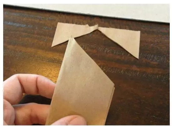 貓頭鷹是夜行動物,白天睡覺晚上“浦頭”,日常生活中我們很難見到它的真容,但是它那呆萌的樣子還是圈粉無數讓多少人成了貓頭鷹控啊!自己動手做一只貓頭鷹“養”在家里好像還能“望梅止渴”呢!首先將手提紙袋的一端剪成倒三角的形狀,如下圖