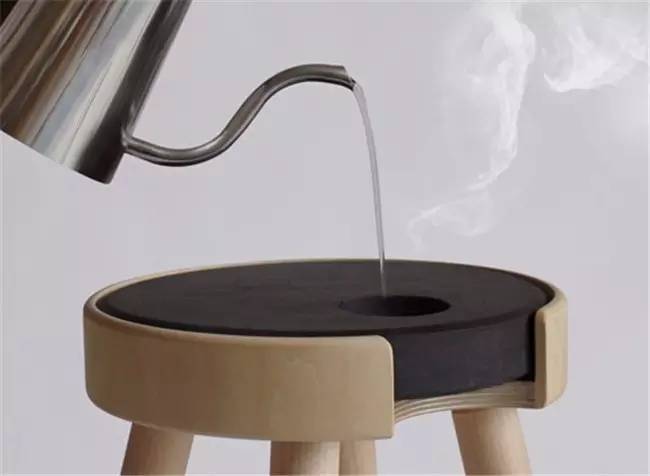 4、設計師將熱水袋的設計放在了板凳坐墊上——一個可拆卸的陶瓷座面,可以通過傳統注水的方式,讓坐墊熱起來。冬天注熱水凳子可以變熱,那夏天想要凳子變涼,那是不是可以注些冰水呢?