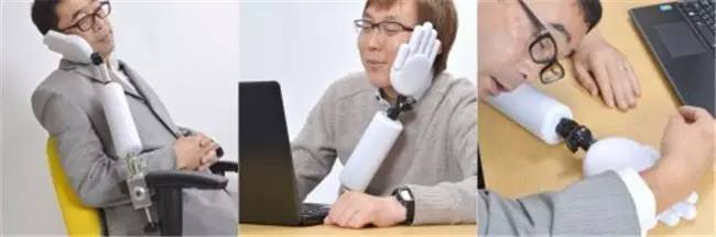 還有這個,設計師發現,人們常常用手托住下巴休息,但是這樣就只能一只手工作了。如何兩全其美,便設計了這款手撐托。造型是有些奇葩,像是莫名被人拍了一巴掌,但是非常多功能,小憩休息也適用呢。看過這兩款設計之后還會覺得小編又冤枉他們嗎?