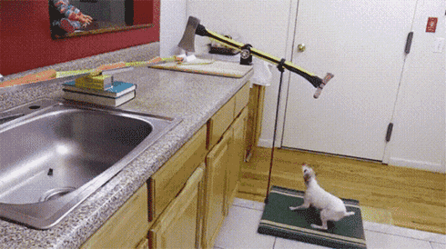 8、美國一位Youtube上的紅人,也是腦洞頗大,設計這款自動切菜神器。只是心疼了汪,跳了半天,也沒吃上一口肉肉。狗狗此時的內心獨白應該是:鏟屎的,你沒事把肉掛那么高干嘛?老子跳半天也沒吃上一口,等下我心情不好了就會想拆家的哦!嗯,小編這狗語十級,掌聲鼓勵。
