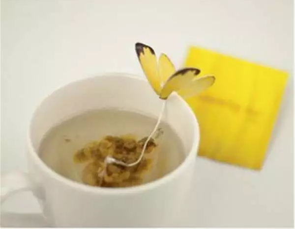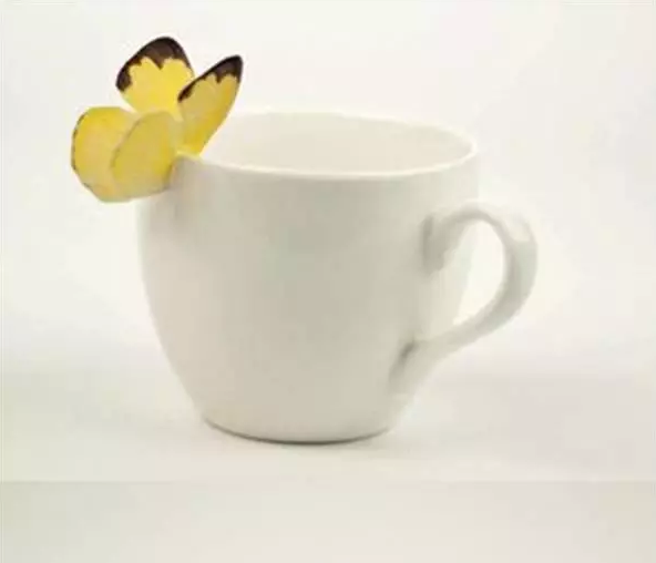 一只蝴蝶翩翩飛來,駐留在杯沿,為的是那股茶香。但是走近一看發現自己見到了一只假的蝴蝶!