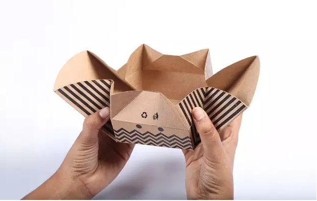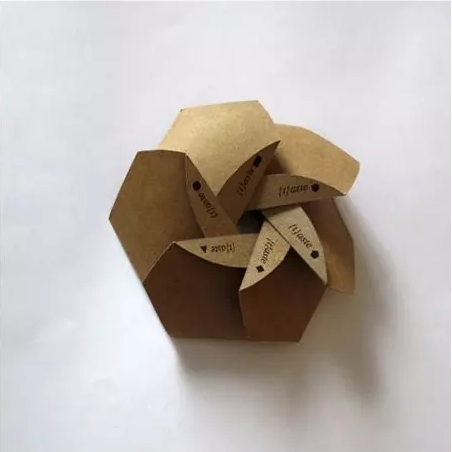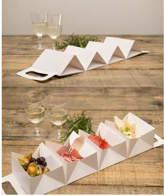 這樣的紙盒包裝對于吃貨來說簡直是個福利,對愛吃的人來說,一次性能吃到多種食物是一件多么幸福的事啊。這紙盒包裝在掰開后有三個獨立的小三角,這三個小三角里可以放不同的食物,簡直不要太方面啊!