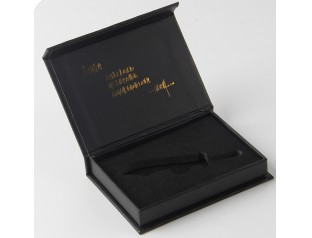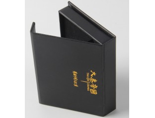 這是一個用來裝紀念刀具的禮盒,盒身為黑色顯得莊重,很適合它紀念盒的身份,盒子表面的燙金文字很是醒目;盒子覆了啞膜,雖然不能像覆光膜那樣發出噌亮噌亮的光芒,但是亞光膜更顯質感;盒子內部的題字也是用了燙金工藝,塑料內托是刀子的模型,把刀子放進去就嵌到里面,不易脫落;這個盒子的設計非常的精巧,邊角處理也特別的精致。