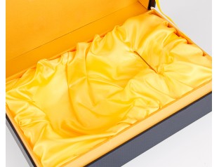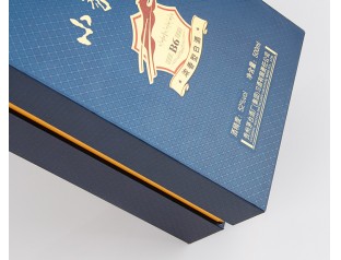 此款高檔酒盒的燙金工藝圖案清晰、美觀、色彩 鮮艷奪目,耐磨、在包裝設計上燙金工藝可以起到畫龍點睛、突出設計主題的作用,效果更為顯著。廣州駿業包裝廠制作的酒盒表面干凈平整、厚實、精致、美觀,送禮體面。不一樣的寶盒,不一樣的感覺!高貴而不失風度!美麗而不失質感! 這款精品酒盒材質選用精品銅版紙作為主要原料,搭配頂級燙印工藝,使酒盒顯得光彩四溢,十分亮眼,層次感豐富,是白酒酒盒禮袋包裝產品中的上品。