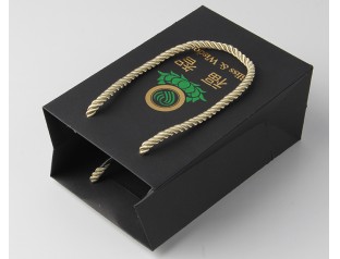 這款首飾紙袋使用原漿紙為主要材料,盒子表面logo使用精美的燙金工藝,凸顯品牌質感。紙袋表面圖案使用CMYK四色彩印工藝,圖案清晰顏色妍麗;拎手處打孔打結處理,更加牢固。廣州駿業包裝作為一家專業的手提袋廠家,自主設計,研發,生產,銷售高檔包裝,歡迎您前來定制。
