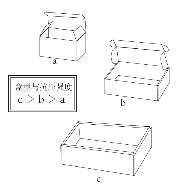 不同的盒型抗壓強度不同,我們常常根據產品的重量、及盒子的功能(物流包裝、銷售包裝)來設計不同的盒型滿足客戶對抗壓強度的需求。