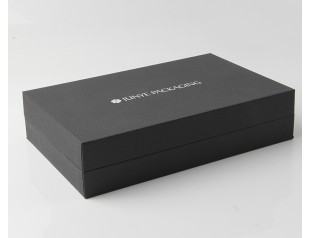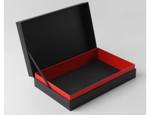 這款盒子使用卡紙為主要材料,觸感柔韌有質感,盒面排版簡單,沒有過多的圖文裝飾,一切都簡單得剛剛好。盒子表面logo使用燙印工藝,突出品牌質感,對產品來說,這款盒子從顏色的選擇到設計都非常的高檔時尚。紅色的內紙與黑色的外殼互相呼應,避免了全黑帶來的沉悶感,而且當人們打開盒子的時候還能有一種耳目一新的感覺。細節處可以看出,盒子做工精細,印刷精美,如果您看上它了可以聯系我們,尺寸可按需求定制。