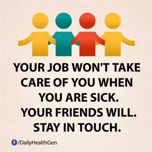 在這個忙碌的社會,很多人往往以工作太忙為借口常常忽略了身邊的朋友,但是請記住,工作不會在你生病時照顧你,而朋友會。