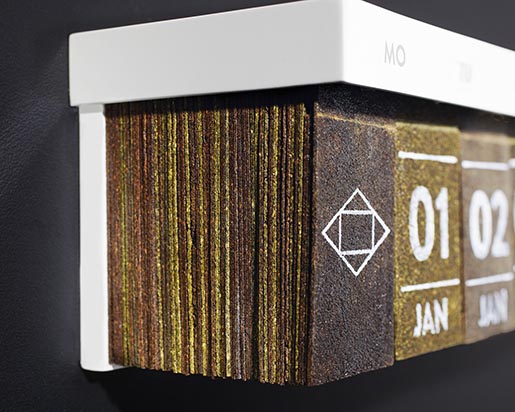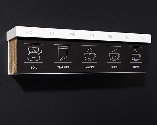 德國(guó)茶商Haelssen and Lyon的創(chuàng)意,日歷茶(Tea Cal ar),直接將茶葉處理、壓制成了薄片,上面用可食用的材料印上日期,做成一年的日歷,每天撕下一片來,直接放入開水里就能泡成茶,非常方便又具備時(shí)間流逝感讓喝茶的時(shí)候能更好的感受和珍惜時(shí)間的更迭??梢院鹊陌b設(shè)計(jì),很是節(jié)能環(huán)保哦~