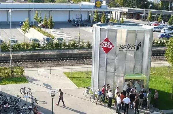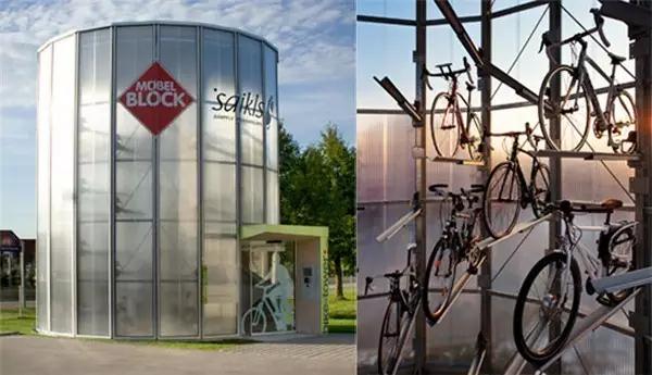 如果你覺得這樣的停車場過于“變態”,只有日本人才能想出來,那么再來看看其他國家的吧。Biketower也是一個自動化自行車停車系統,占地只有30平方米,位于德國梅肯博伊倫火車站外,可存放112輛自行車,且利用太陽能作為動力能源。