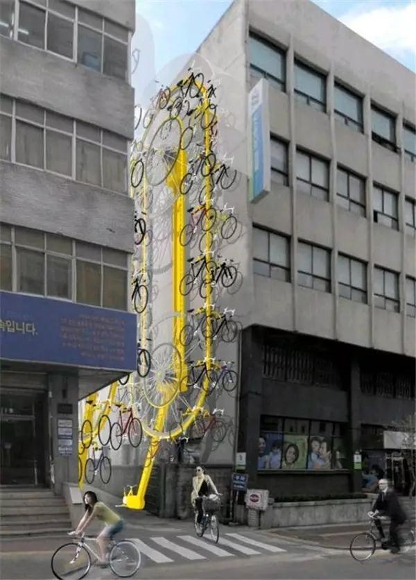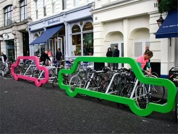 除了密集型的自行車架分布,還有比較零散的,專治那些想隨便停車的人,這個很適合我國“國情”啊~