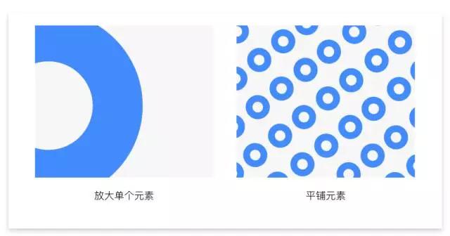 但是在做延展的時候遇到了問題,由于自己的“平面構成”水平一般,所以一直以來對于圖形延展都很抗拒,自己常用的延展方式要么是放大單個元素,要么是平鋪元素,如下圖: