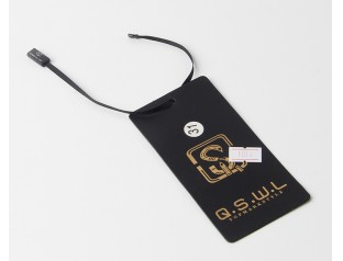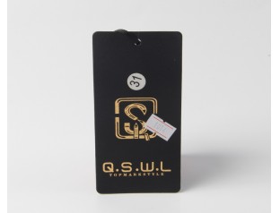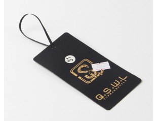 此款商標吊牌廠家選用黑卡紙,商標燙金,黑卡紙是特種紙的一種,其表面平整光滑,挺度好,拉力好,耐破度高此款吊牌設計選用了黑色作為主體色,搭配醒目燙金的LOGO,更彰顯其品牌價值吊牌設計采用了經典的黑色和金色配合,沉靜的黑色能隱去燥熱,璀璨的金色能喚起您喜悅的心情