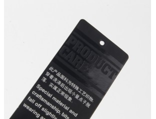 此款吊牌印刷,采用了黑卡紙作為主原料,黑卡紙是特種紙的一種,其表面平整光滑,挺度好,拉力好,耐破度高吊牌定制為了彰顯其品牌價值,突出公司LOGO,采用了局部UV,使其顯得更加立體,更加有質感和藝術感吊牌白色的字體說明,和黑色的主體配合,互相點綴呼應,詮釋簡約而又低調華麗的特性